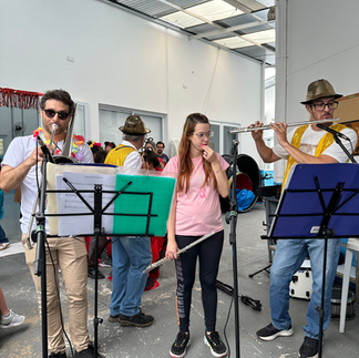 Além da comemoração interna, a música da ADEFIP também levou alegria para fora da instituição. A Banda Musical Wladimir Ronsini participou do Carnaval do Colégio Jesus Maria e José, levando ritmo, entusiasmo e muita energia para a comunidade escolar.